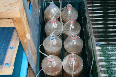 ています。また、大阪のOさんからも毎年恒例の稚魚交換で舟がいっぱいになってきました。ブ ラインシュリンプを湧かすのもピークですね。ペットボトルを止めて「九州のHIROさん」からいた だいた生ゴミ用の容器の使用を開始しました。