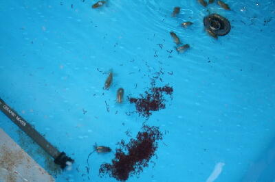 赤虫をちぎることになりますので、飼育水は痛み易くなります。