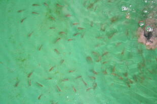 現在、ブラインシュリンプは1日に4〜5リットル分与えていますが、昨日より粒餌や冷凍ミジン