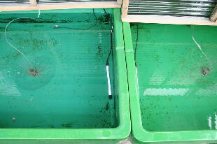 通常、青仔から大きい舟に移動するのですが、一番もらしの仔はプラ舟バイオ飼育のご参考