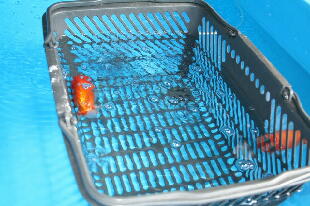 養生(隔離)する舟の余裕が無いので、雄雌一緒に養生ですが買い物籠に雌を入れていま