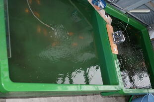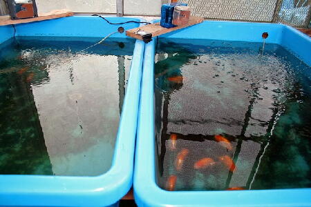 水温が急激に下がった日は餌も調整して少な目に与えています。