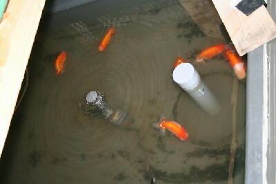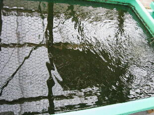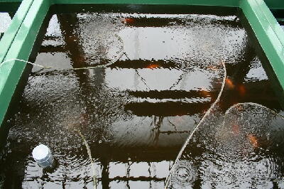 120リットル程度の舟にイッシー装置をセットし水温は28℃