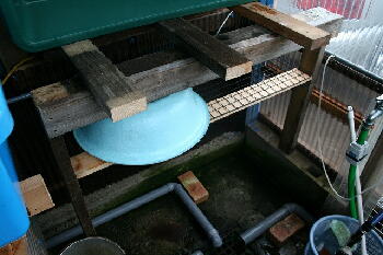 あまっている材木で棚を作りプラ舟110を設置しました。