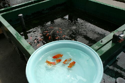 水温変化の大きい時は餌の量を調整し消化不良を起こさないように注意しています。