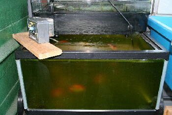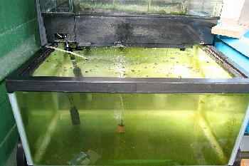 しばらくほったらかしで水換えをしていないので、飼育水も薄い青水になってきました。