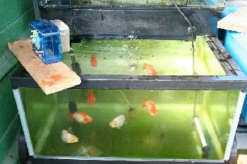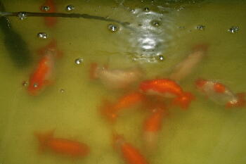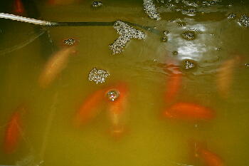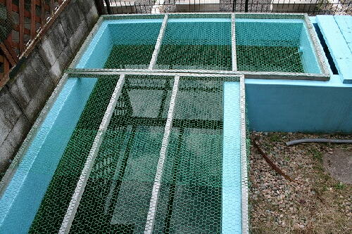 自宅のたたき池はどろどろの青水だよ〜ん!全然魚見えない・・・