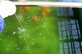 通常、一回目の選別まで水換えできないので産卵後水を換えますが、ここはバイオ飼育の出番です。