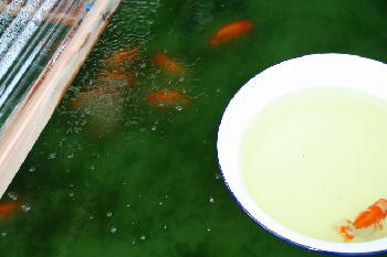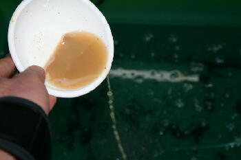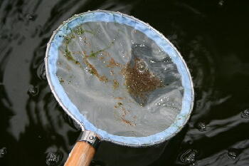 | じゃ〜ぶじゃ〜ぶじゃぶ!よ〜く稚魚をふるい落とします。 |
