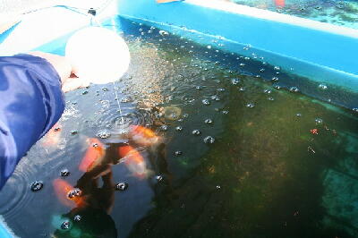 大きい舟の水温は15度設定にしています。日中の水温は18度まで上がりました。