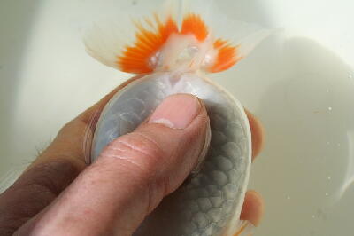 | 産卵が近くなると、お腹の下(この部分)が柔らかくなります。 |