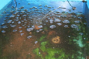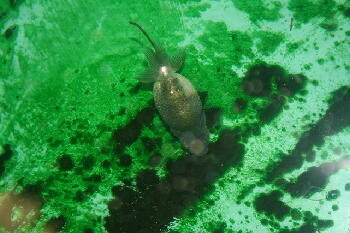 糞の量がすごいので、舟の底や周りもどろどろです。バイオ飼育でなければ、エラになってるかも・・・