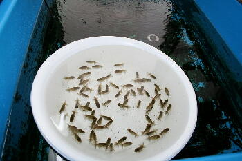 明日は、孵化から4回目の水換えと同時に背腰もチェックして1舟60匹程度にする予定です。