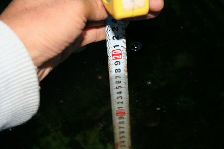 | 飼育日記のプラ舟の水深18cm弱 |