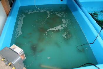 | <6月18日スタート翌日> かなり飼育水が傷み悪臭がしています。魚の動きも悪いですね。 |