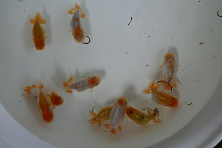 | 色柄も見てバランス良く5匹ずつ分けますね。 |