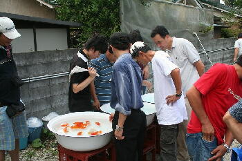 | 皆さん魚を見る目が真剣・・・・あれ?俺の魚どれだっけ・・・ |