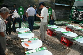 | 親魚から順に審査が開始されました。 |