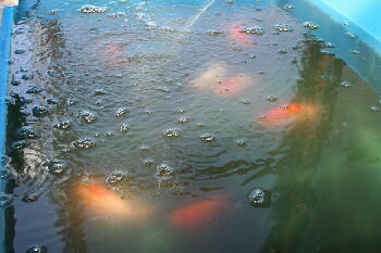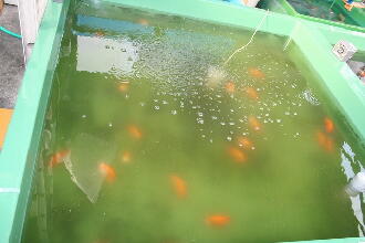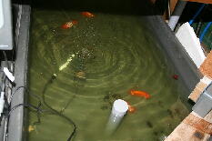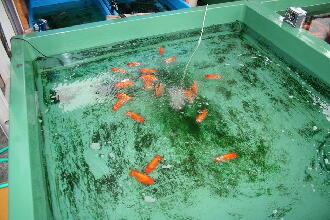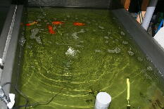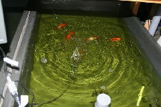 中には、青水作り隊の仔が1匹だけ泳いでいます。(かわいそ〜!)餌は1日一回、少しだけ・・・