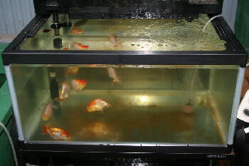 | 飼育水が白濁しているのは、まだろ過(バクテリア)が機能していない状態なのです。 |
