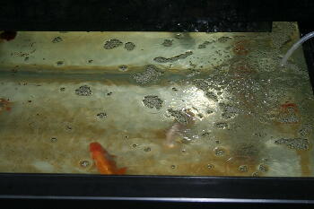 飼育水が白濁(アンモニアが多い)している状態は危険です。