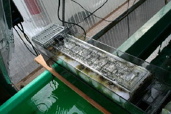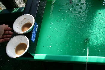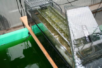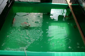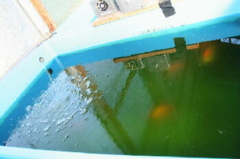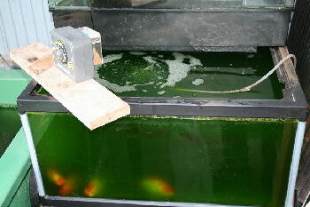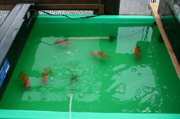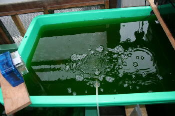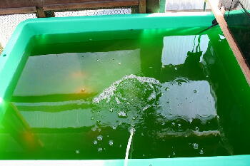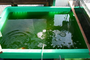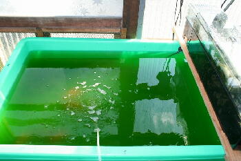 ろ過器付きのプラ舟バイオ飼育の舟は青水が結構進んでいました。