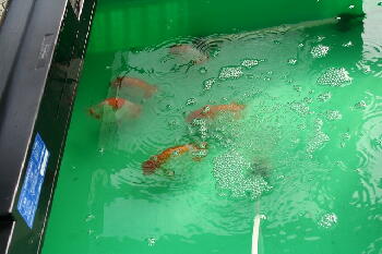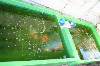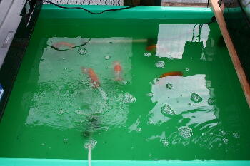 しかし、どちらも魚の餌食いは良くバリバリ元気です。調子の悪い仔はこの水槽で約1週間養生します。